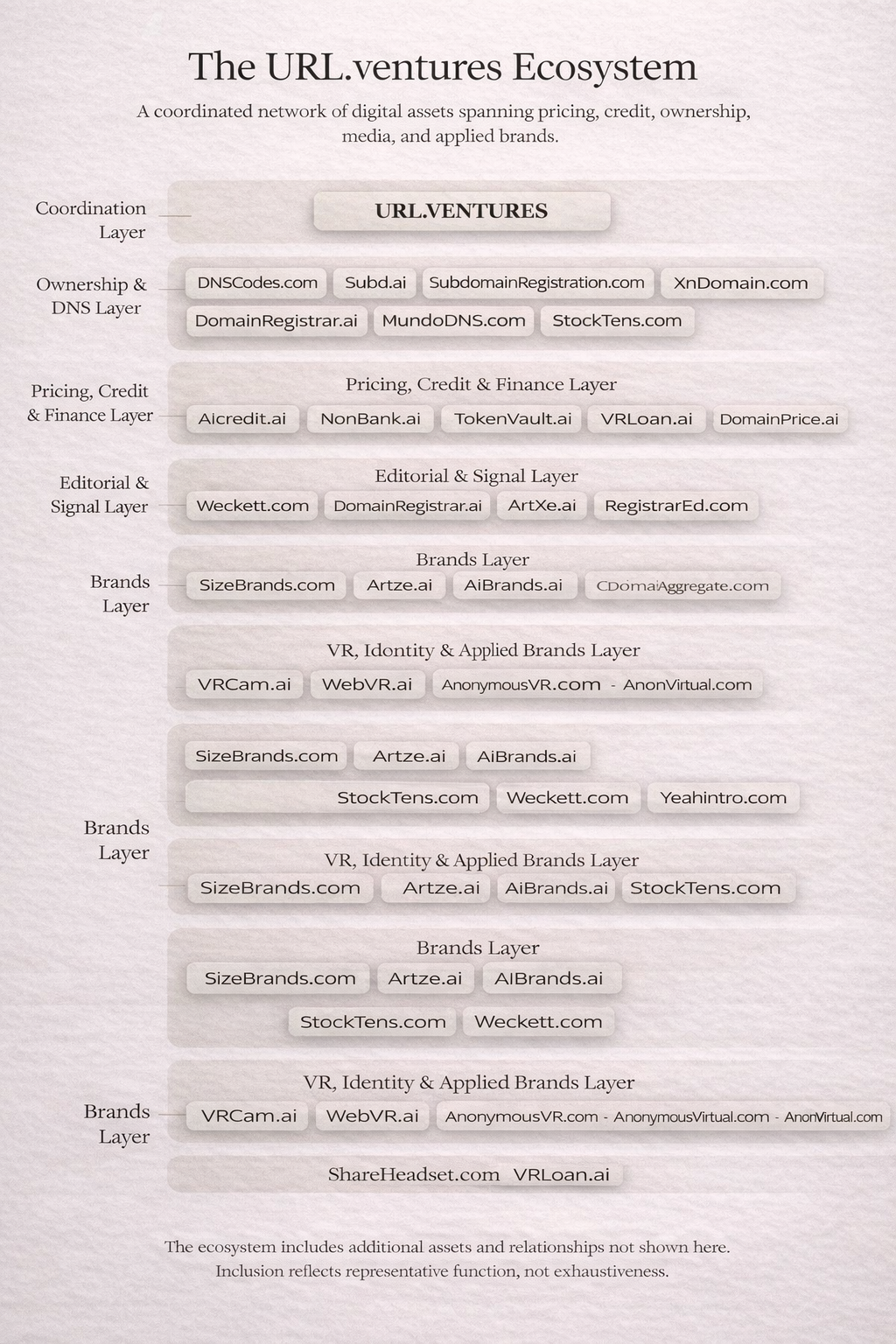 A multi-layer network of digital assets spanning pricing, credit, ownership, media, and consumer verticals.